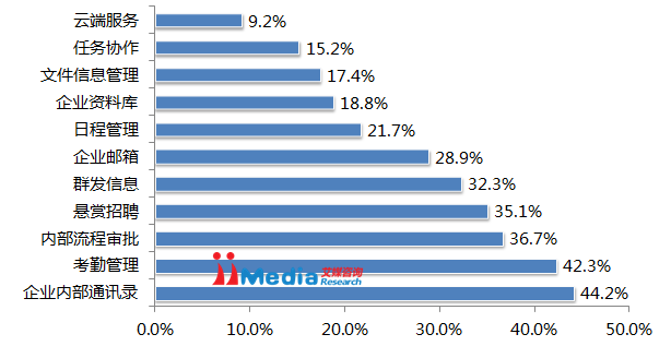 2015年中国中小企业微信企业号日常主要辅助功能分布
